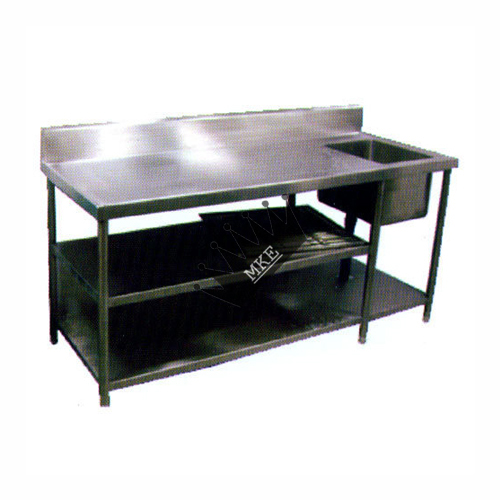 We provide a wide array of Work Table with Sink that is manufactured using high grade raw material. Installed with a sink, it helps in washing the vegetables or utensils. Moreover, these are available in various shapes & sizes and number of shelves for the easy storage of the utensils.