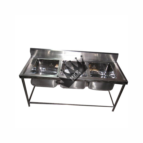 We are the major manufacturer and supplier of Three Sink Unit. These are extensively used in canteens, hotels and restaurants. These are manufactured using excellent quality stainless steel and modern technologies. These are available in various sizes, designs and shapes. Our clients can purchase these from us at affordable price range.